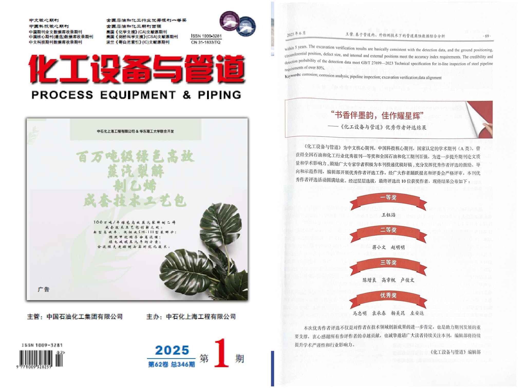 趙明明撰寫論文獲《化工設備與管道》優秀作者二等獎